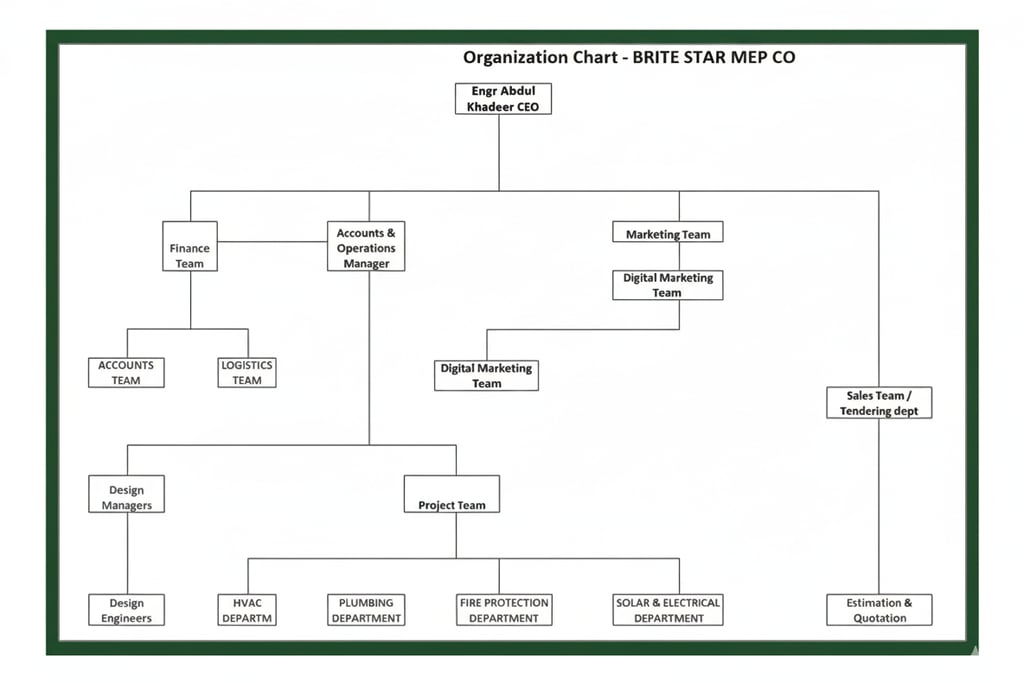 At Brite Star MEP Contracting Company, our goal is simple yet powerful — to serve the construction industry with advanced MEP technologies and sustainable engineering solutions. We strive to deliver excellence across HVAC, Electrical, Plumbing, and Firefighting systems, ensuring every project reflects innovation, safety, and long-term reliability.